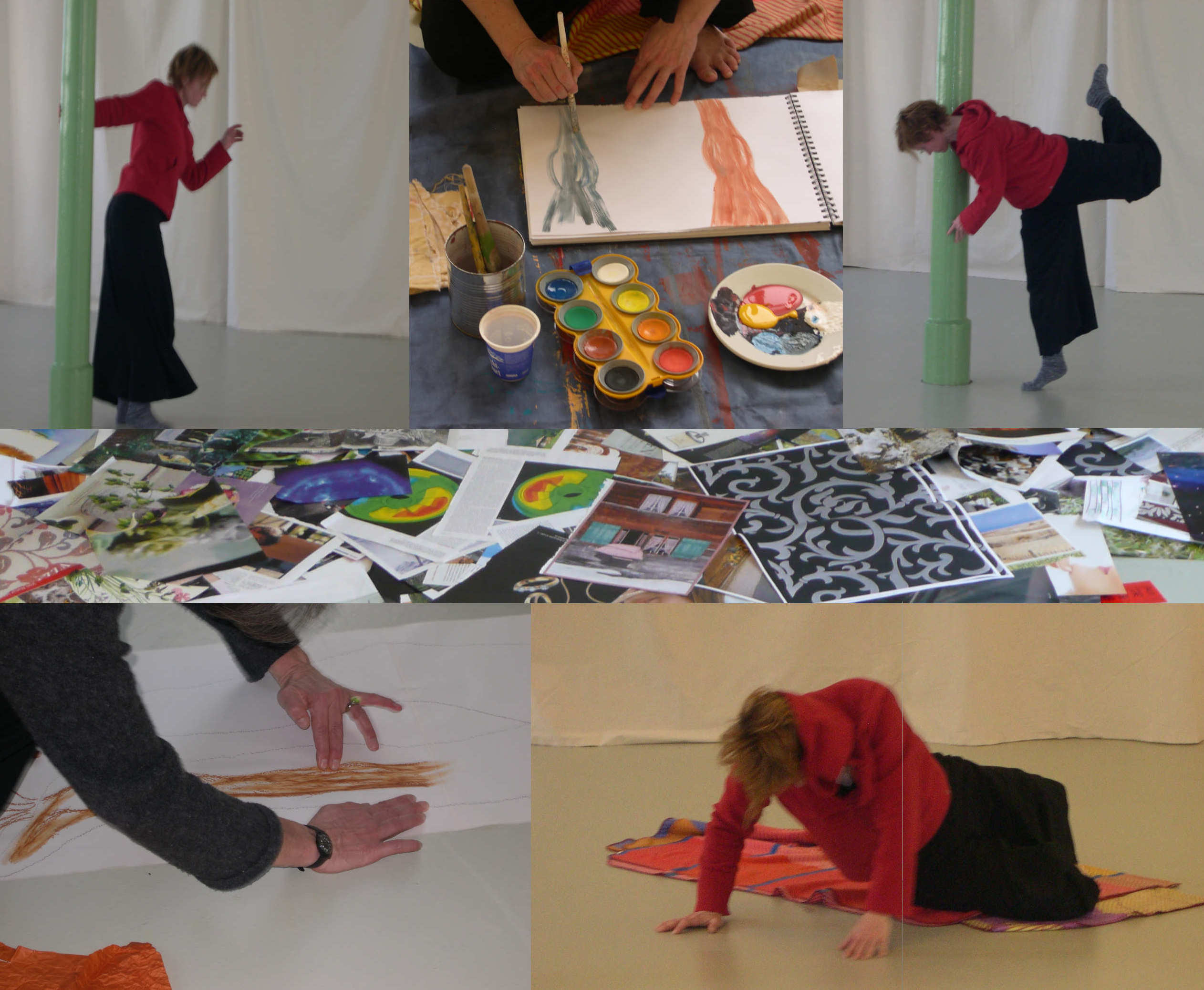 Wir experimentieren mit spontaner Bewegung aus dem Moment, mit Gedanken, Impulsen und Bildern.