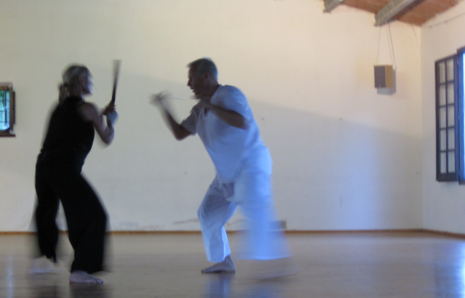 Das Spiel mit Bewegung mit und ohne Stock, das Arbeiten an der eigenen Energie und Präsenz und das Erleben von Klarheit und Vertrauen im Dialog sind Gegenstand unserer Arbeit.
